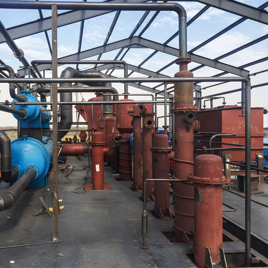 DT outlet duct is designed to get the vapor velocity sufficient to cyclonic separation. Wet dust catcher is specially designed with incorporated cyclone separator and Vapors thoroughly washed with water sprays for removal of dust particles. This high efficiency cleaning provides trouble free running of heat exchangers